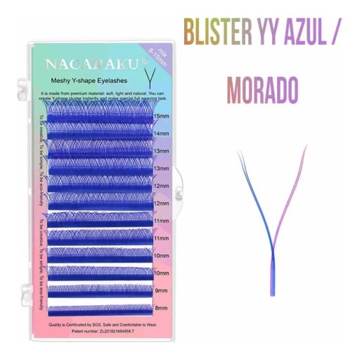 Extensión de pestañas NAGARAKU YY curvatura L en 0.07 D mix contiene 12 filas mixtas desde 8 mm hasta 15 mm.